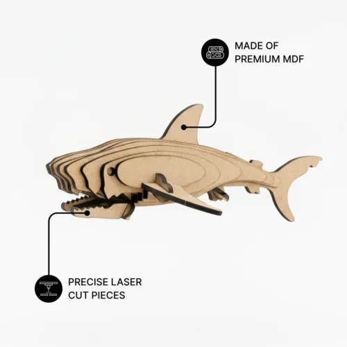 Dive into fun & learning with our 3D Shark Wooden Puzzle! Perfect for curious kids and ocean lovers — build, learn, and play with this jaw-some gift!