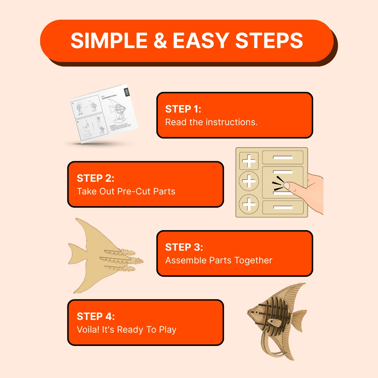 Make a splash with our Ocean Creatures DIY Wooden Puzzle Bundle — a delightful trio featuring a Shark, Fish, and Dolphin. Each model is carefully crafted from premium, eco-friendly MDF sheets with precise laser-cut pieces for a smooth and satisfying building experience.
